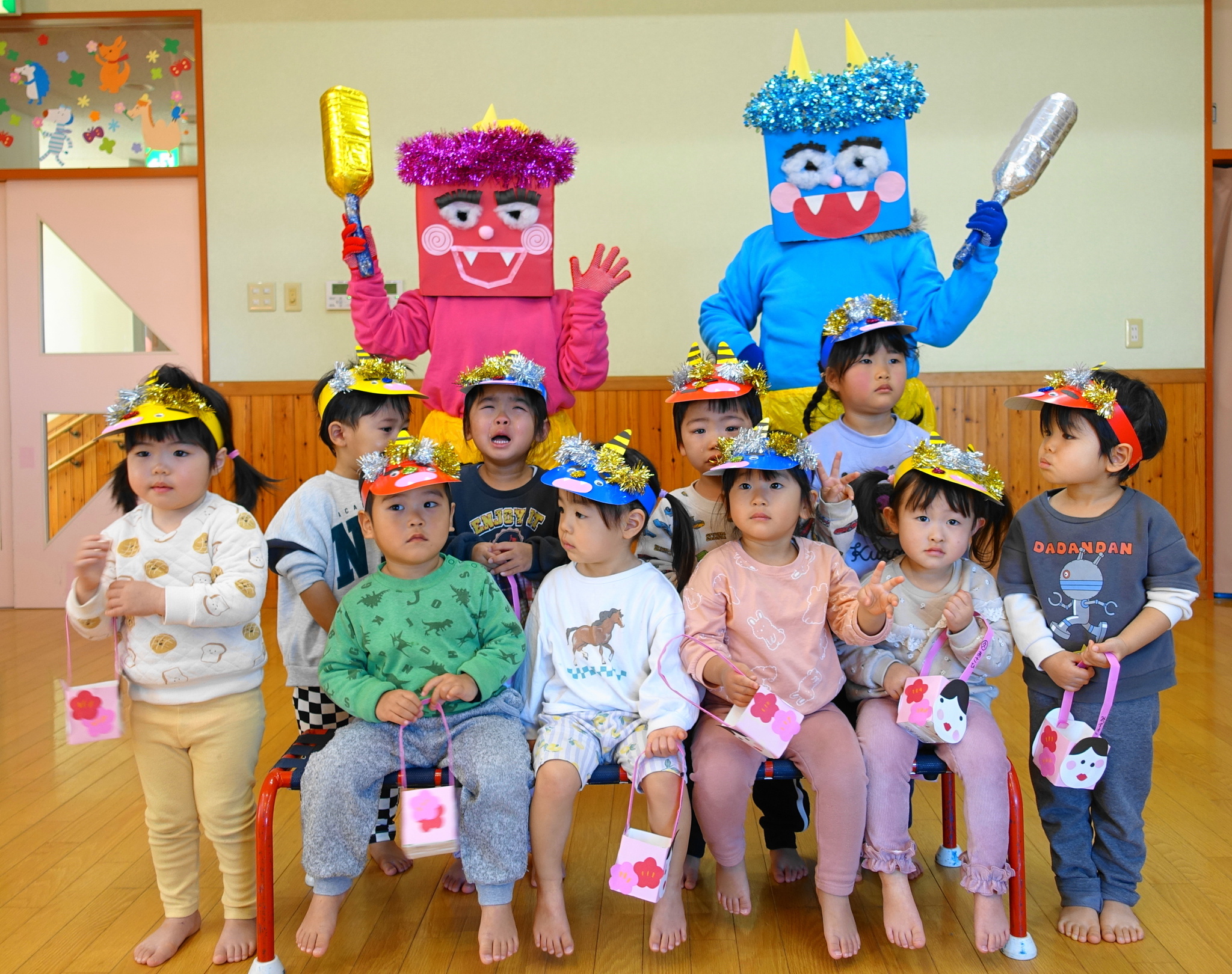 新着情報 一覧へ戻る節分2026-02-03こわいと~・2月3日恒例の節分、豆まきです。鬼が怖いお友達が避難し開始!が、やっぱり泣いてしまい・・・目の前でお面を脱ぎ着もしましたが去年泣いてたお友達が今年は果敢に退治してくれました